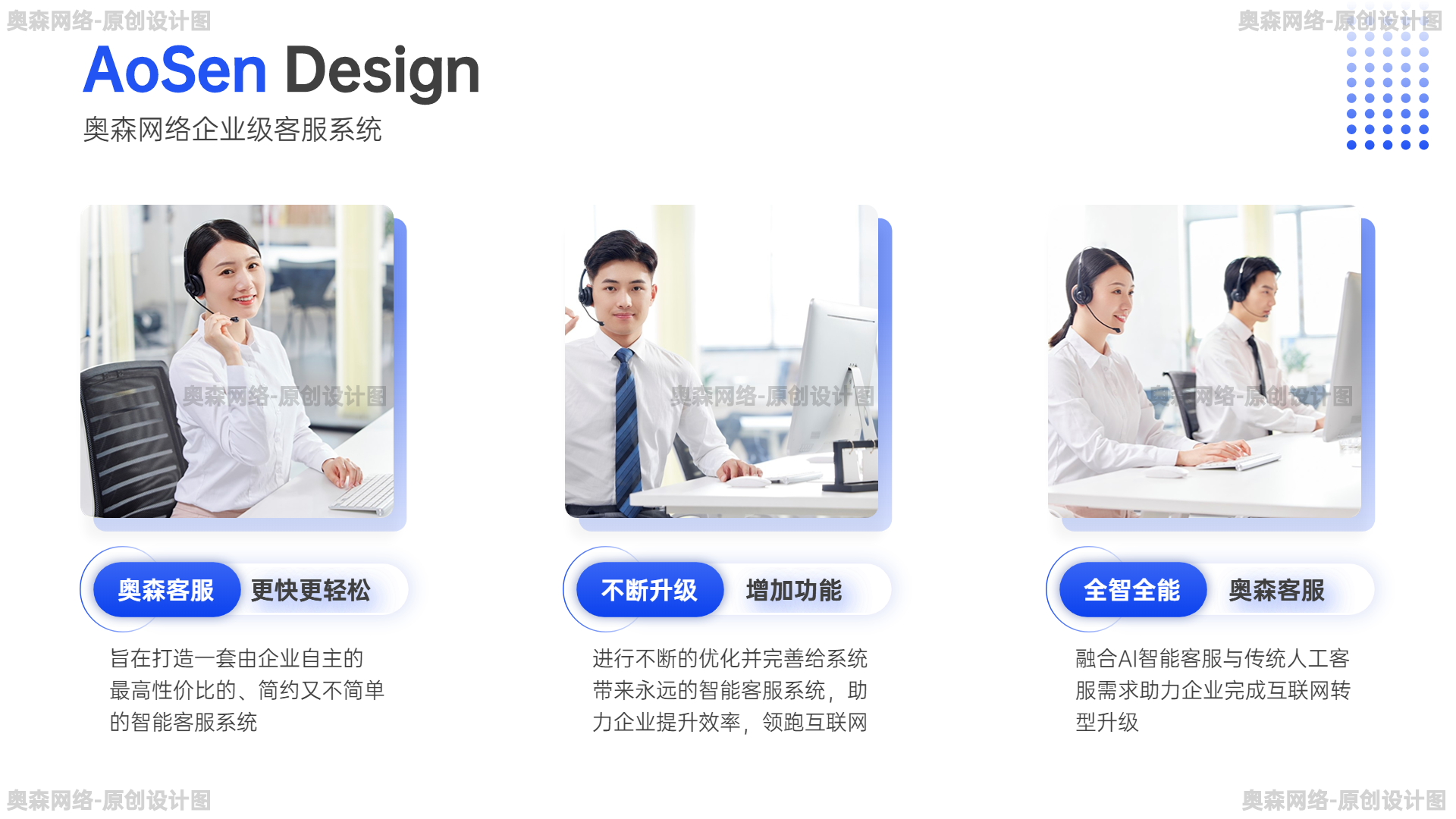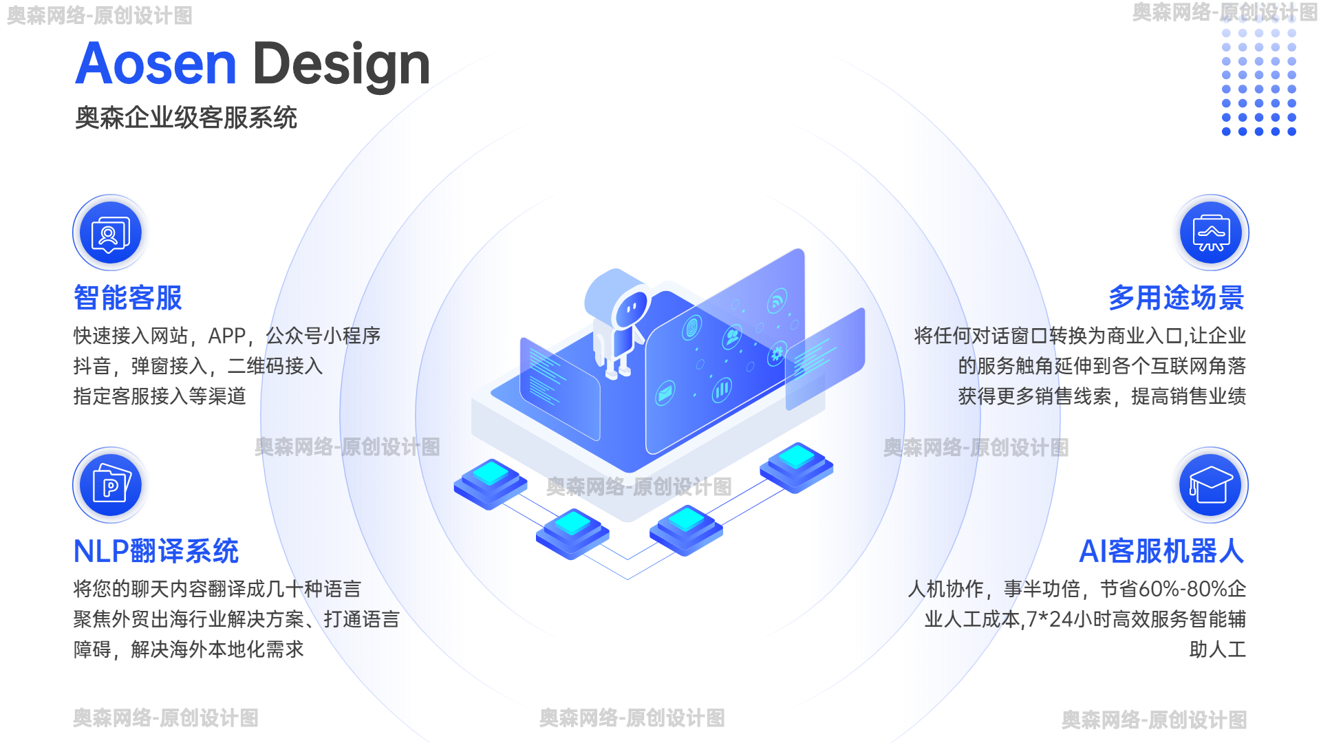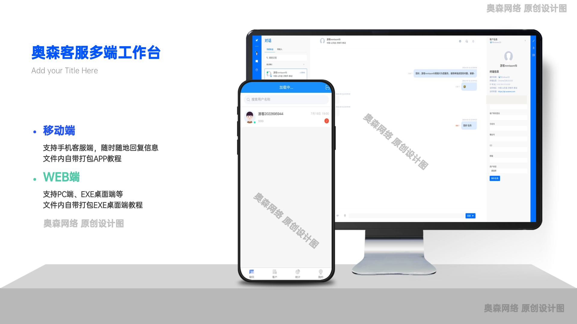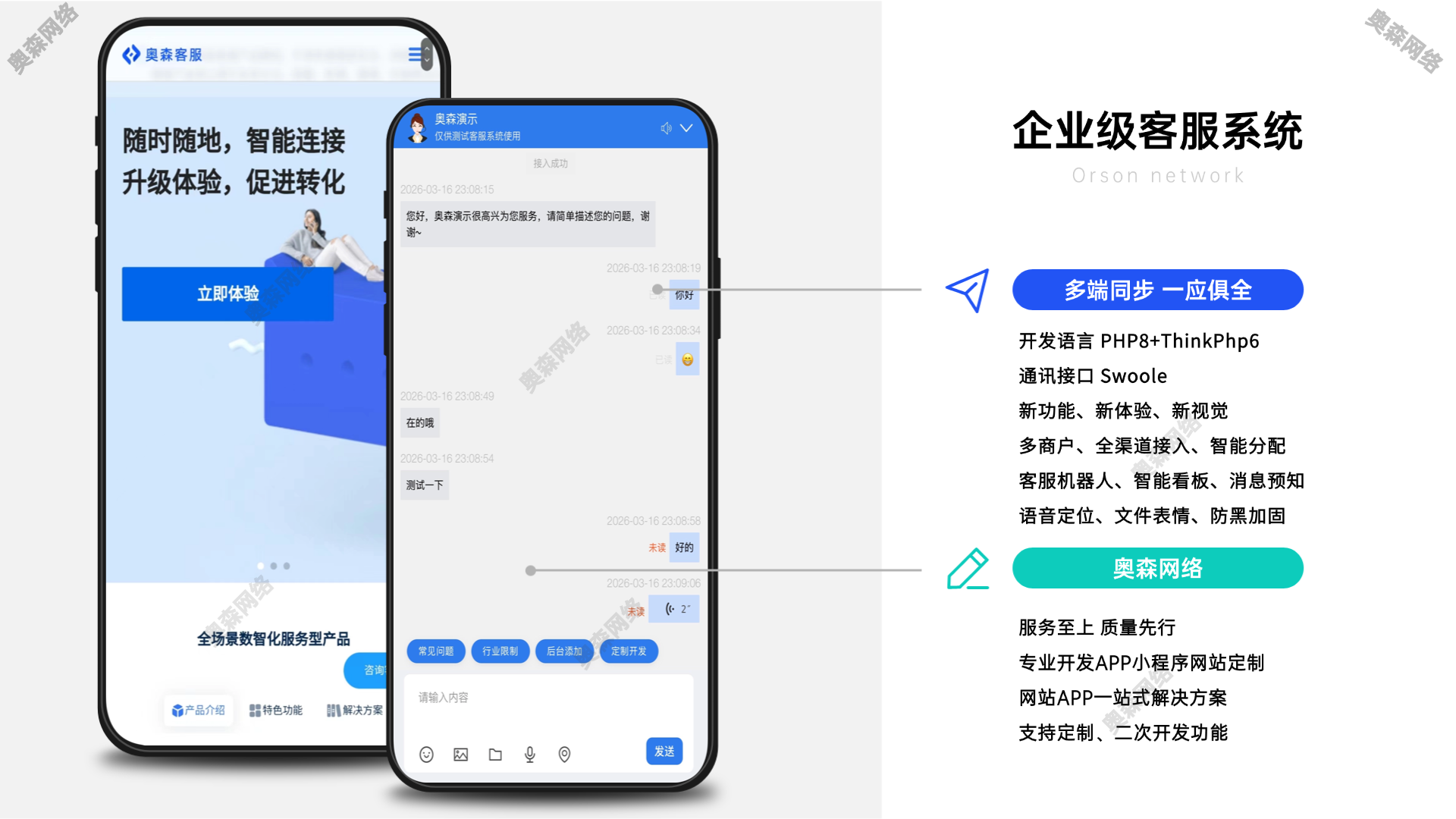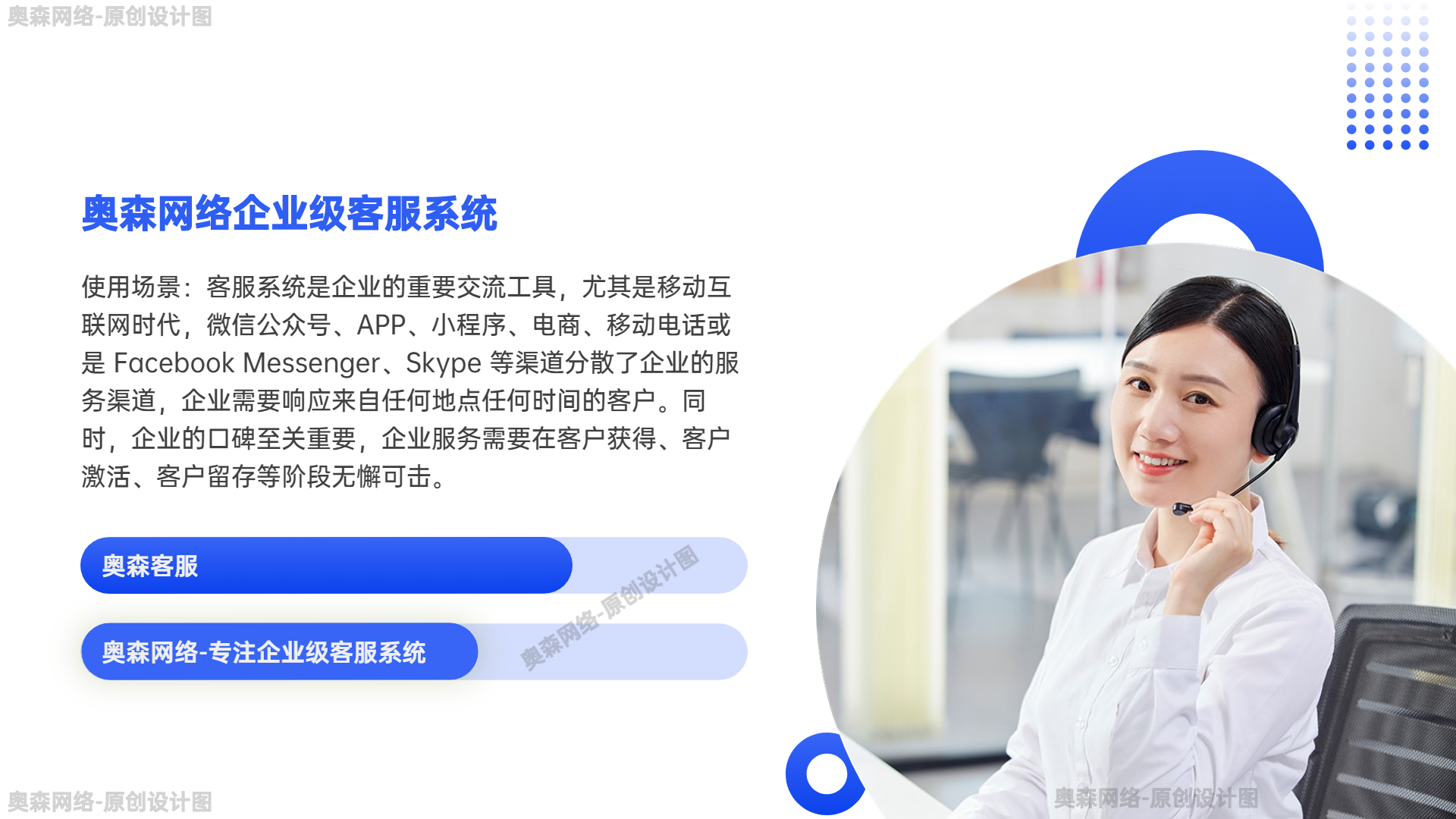 奥森网络专业APP开发、网站设计、小程序开发、提供一站式企业服务 精选模板 企业级多商户客服即时通讯系统无限坐席智能机器人语言定位自动回复智能看板超多功能 https://snipx.cn/moban/mbann/5089.html