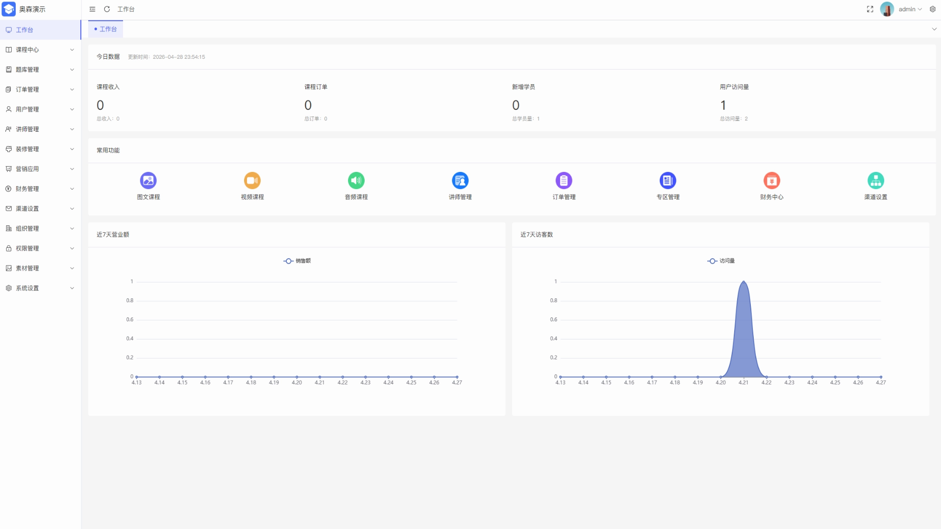 后台可以看到用户在前端商城下的所有订单记录;支持在后台添加讲师信息,允许课程支持关联讲师