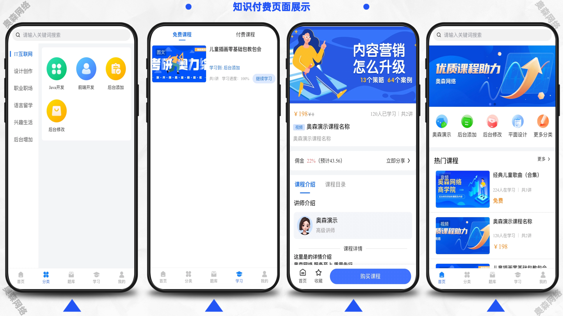 付费课程、用户免费试看/试听部分课程后可自主选择是否付费购买