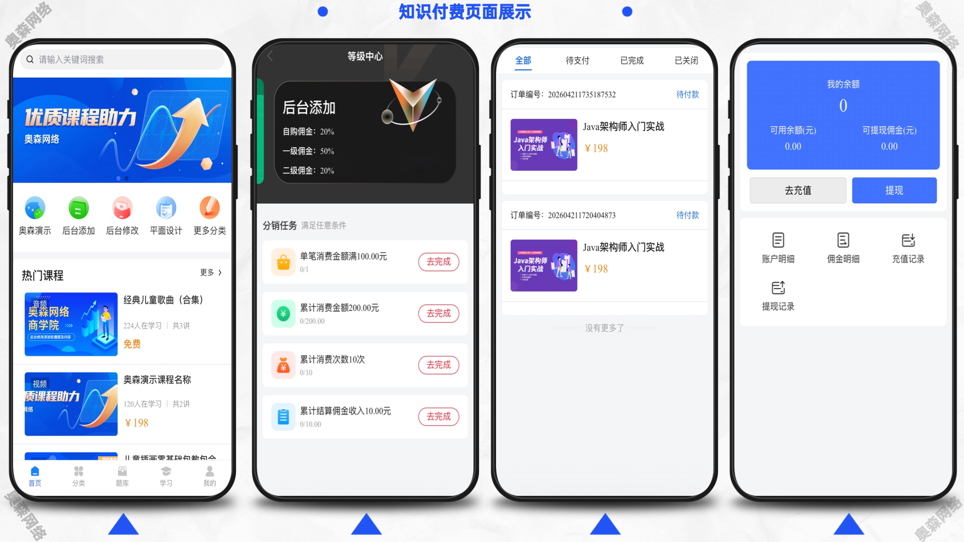 企业级知识付费源码音频章节付费文本课程视频课程小程序支持会员支付分佣逻辑在线支付
